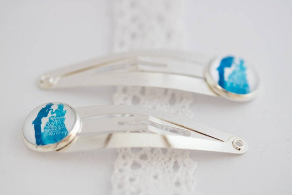 Klikspelden met een cabochon met print uit de animatiefilm 'Assepoester'.