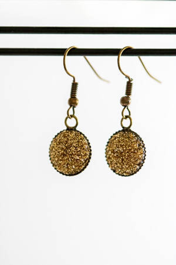 Gouden glinsterende 12mm steen in een bronzen setting.