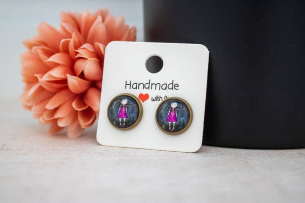Een print uit onze 'Cute Girl' collectie. Op deze print een schattig meisje met aan de ene kant haar bezem en aan de andere kant een poes. Deze print zit in een 12mm bronzen setting.