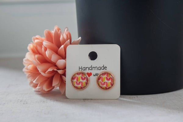 Rood en lichtgroen tulppatroon in een 12mm oudroze setting.