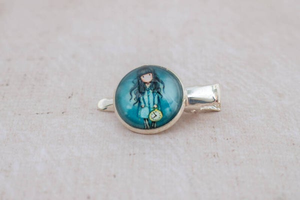 Leuke haarspeld uit onze 'Cute Girl' reeks! Op de cabochon van 18mm staat een meisje met een klokje. De print bestaat voornamelijk uit groene tinten. Deze leuke print zit in een zilverkleurige setting.