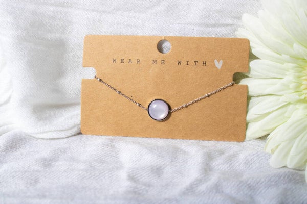 Fijne zilveren armband met Polaris element in een glanzende pastel lila kleur.
